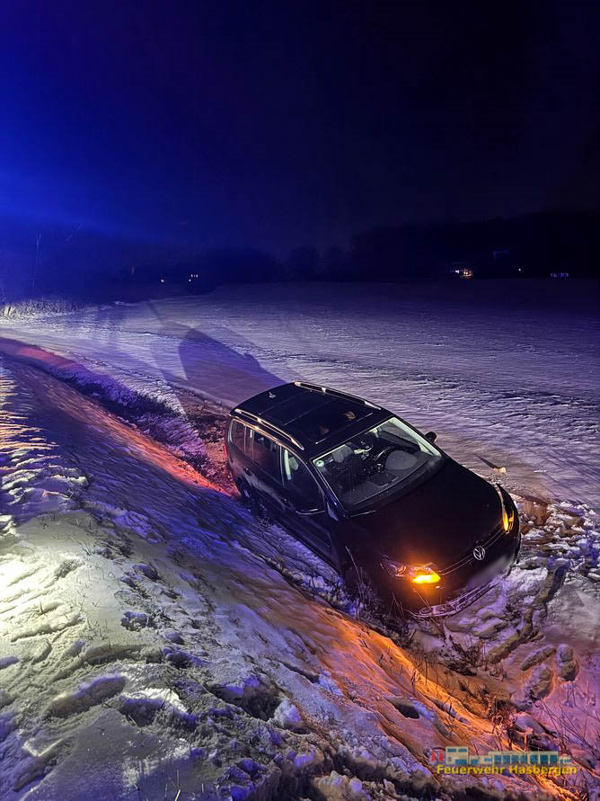 Die Feuerwehr Hasbergen wurde am Sonntag, den 11.01.2025, um 19:23 Uhr mit dem Stichwort TH1 zur Straße am Amazonen-Werk alarmiert. Nach dem Eintreffen an der Einsatzstelle fanden die Einsatzkräfte einen PKW vor, der in einem abschüssigen Graben beziehungsweise Acker zum…